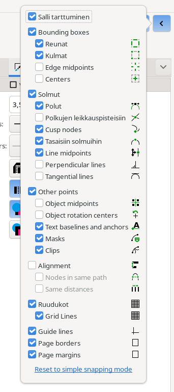 Ikkunan reunassa äärimmäisenä oikealla ylhäällä ovat kohdistus- eli tartuntavalinnat.