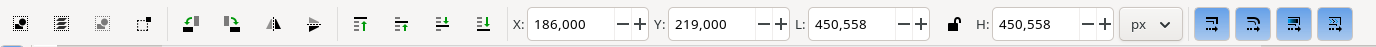 Piirtoalueen yläpuolella olevan palkin sisältö vaihtuu sen mukaan, mikä työkalu kulloinkin on valittuna. Siellä ovat nähtävillä kuhunkin työkaluun liittyvät valinnat, asetukset ja toiminnot. Esimerkiksi valintatyökalun ollessa käytössä, tässä palkissa ovat muun muassa piirtoalueelta valitun kohteen sijainnin koordinaatit ja koko sekä toiminnot kohteen peilaamiselle ja kiertämiselle.