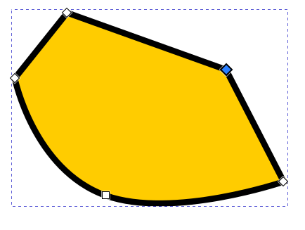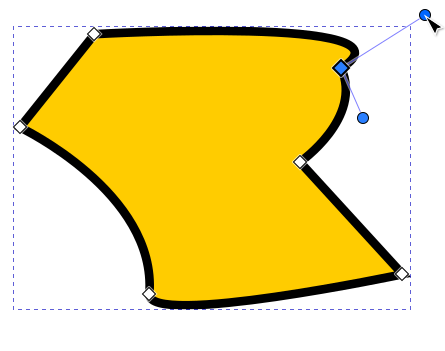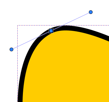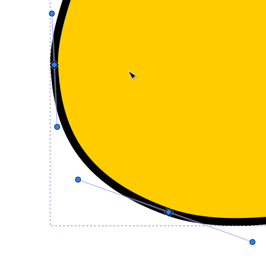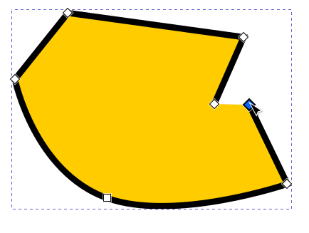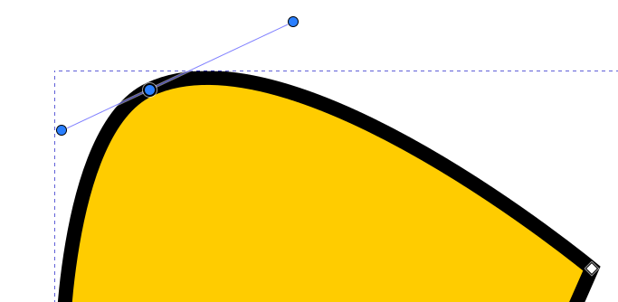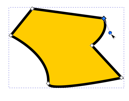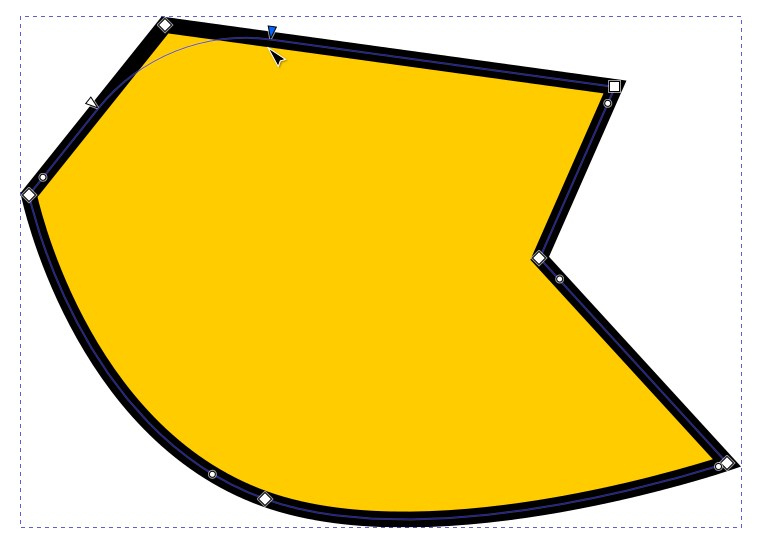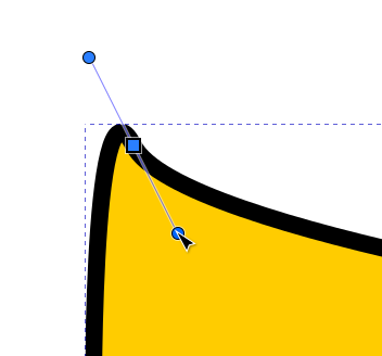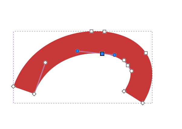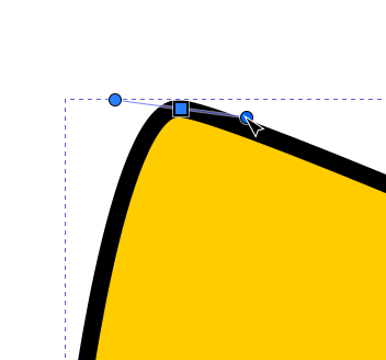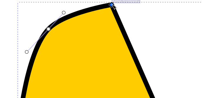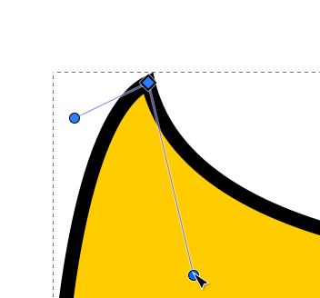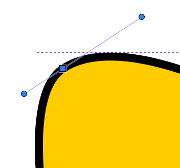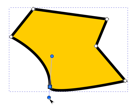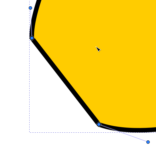 Jos polusta valitaan solmu, jota vastaava kulma on pyöristetty, näkyvät siirtokahvan ympärillä myös pyöreät “venytyskahvat”, joilla kulman muotoa voidaan muokata siirtämällä ja venyttämällä. Jos solmuun ei liity näitä kahvoja, ne saa esiin ottamalla solmusta kiinni hiirellä ja vetämällä Shift-näppäin pohjassa viivan suuntaan. Molempien viivojen suuntaan lähtevät kahvat ovat venytettävissä erikseen.