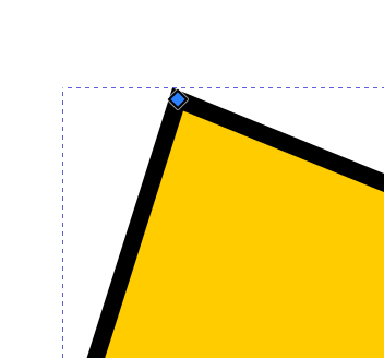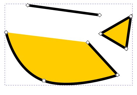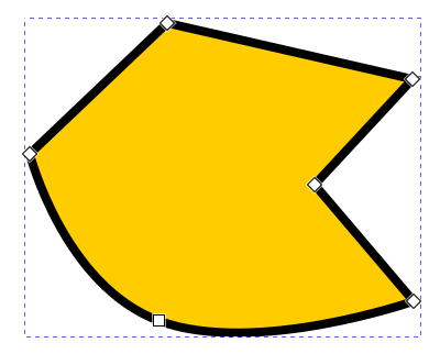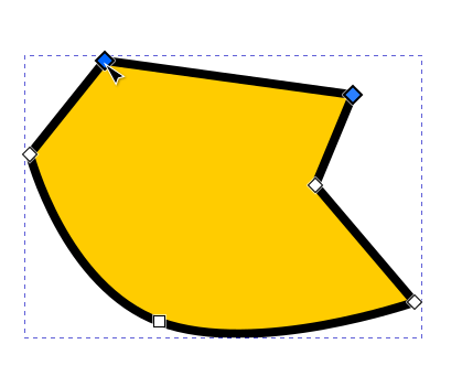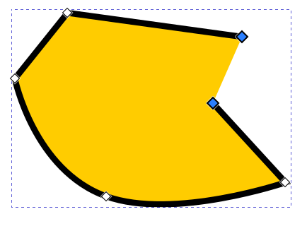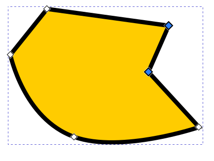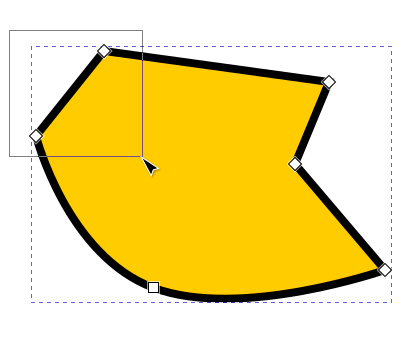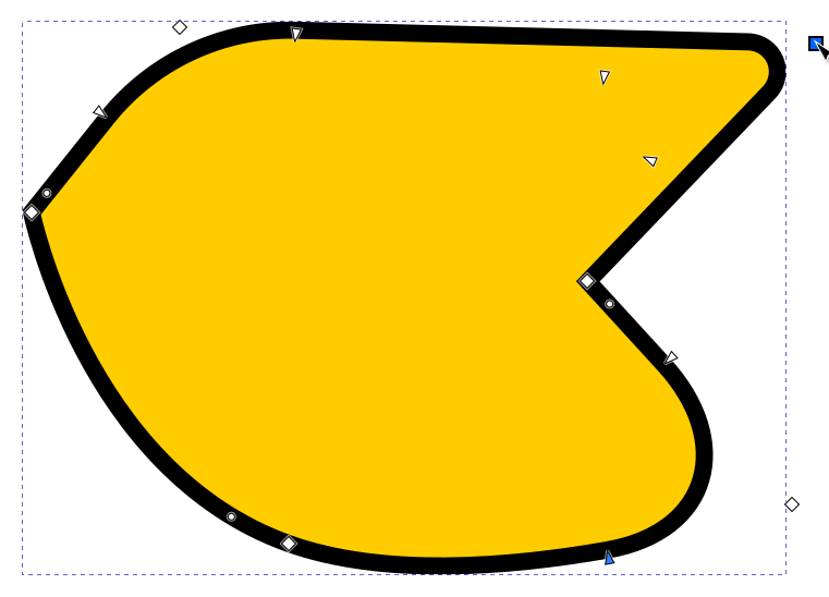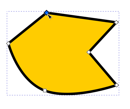 Kun solmutyökalu on käytössä, aktiiviseksi valitussa polku-objektissa ovat kaikki sen solmut näkyvissä pieninä neliön muotoisina siirtokahvoina. Jos solmun kulma ei ole pyöristetty, neliö on kärjellään, ja jos kyseisen solmun kulma on pyöristetty, siirtokahvan neliö on vaakasuunnassa.