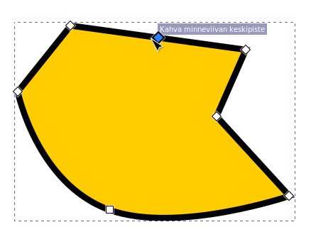 Solmujen väliin jäävän viivan muotoa voi pyöristää ja venyttää myös ottamalla hiirellä kiinni suoraan viivasta ja venyttämällä sitä haluamallaan tavalla.