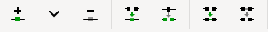 Asetuspalkin seuraavat kaksi nappia liittyvät solmujen venytyskahvojen lisäämiseen ja poistamiseen.
