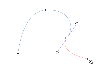 Piirtotyökalulla polkua piirrettäessä pisteen molempien puolien kahvat toimivat symmetrisesti, eli pisteen kohdalle polkuun tulee samanlainen kaarevuus kumpaankin siitä lähtevään polun osaan. Myöhemmin opetellaan, miten näitä pyöristyskahvoja voidaan siirrellä jälkikäteen tarkemmin solmutyökalulla.