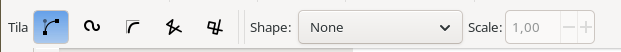 Viivatyökalun asetuspalkista voi valita työkalun toimintatilan. Ensimmäinen tila on tavallinen bezier-polku. Sen jälkeen tulevat Spiro-polku, BSpline-polku, suorat viivalohkot sekä kohtisuorat janat.