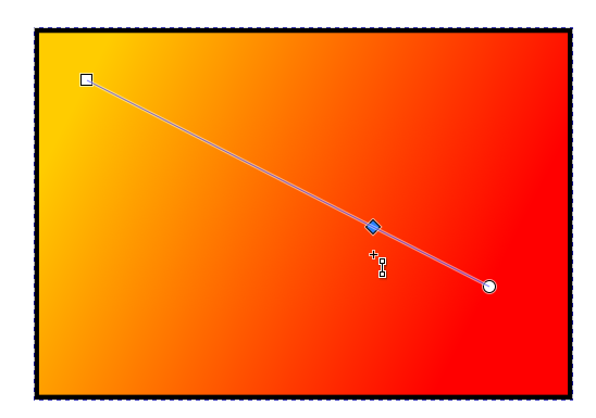 Kun säteittäistä liukuväriä luodaan, säädettävissä on neliökahvalla merkitty liu’un keskipiste ja pyöreillä kahvoilla merkityt kaksi toisiaan vastaan kohtisuoraa akselia. Akselien pituudet ovat toisistaan riippumattomasti valittavissa, mutta niiden suunnat ovat toisiinsa lukitut.
