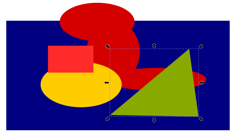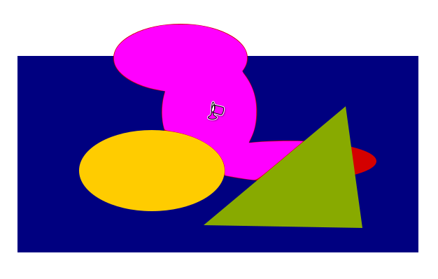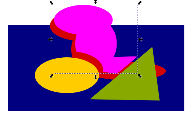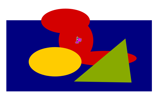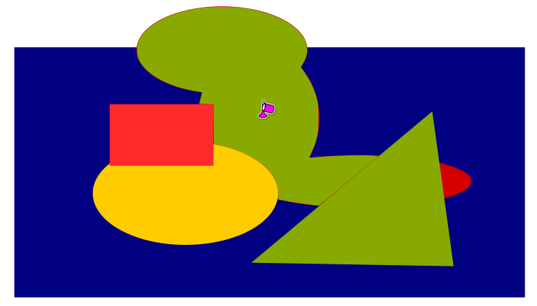 Alla olevissa kuvissa on esimerkki tästä. Kuvan kirkkaan punaisen ja keltaisen sävyn punaiset komponentit ovat yhtä suuret ja siksi täyttötyökalun luoma uusi polku peittää molemmat värit.